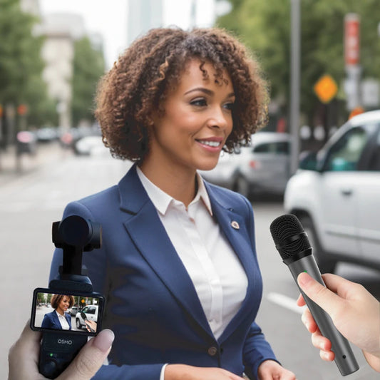 NUNAVO Wireless interview microphone Condenser Shotgun Mic XLR Microphone handheld for iphone android studio recording mic noise cancel
