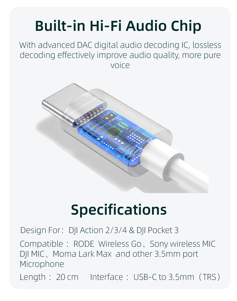 Model Number: audio cable for DJI action camera 2/3/4/pocket 3
