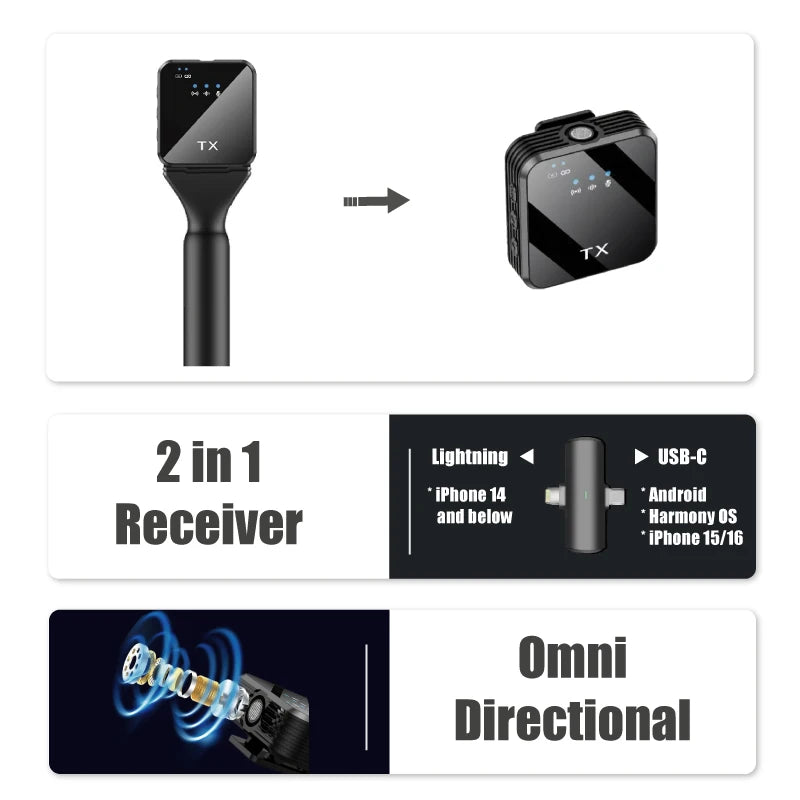 • All in 1 combo: USB-C & Lighting 2in1 receivers, plug and play, compatible with
