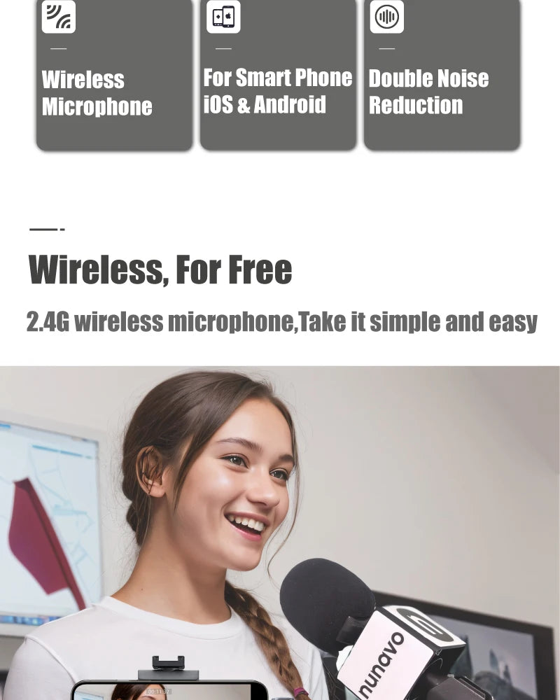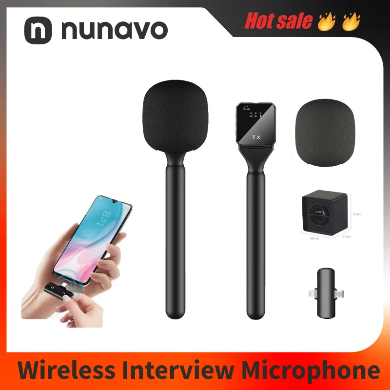 NUNAVO Microfono inalambricos profissional Interview wireless microphone Mic Handle adapter microphone handheld adapter smart phone