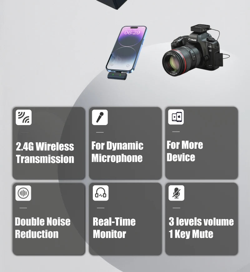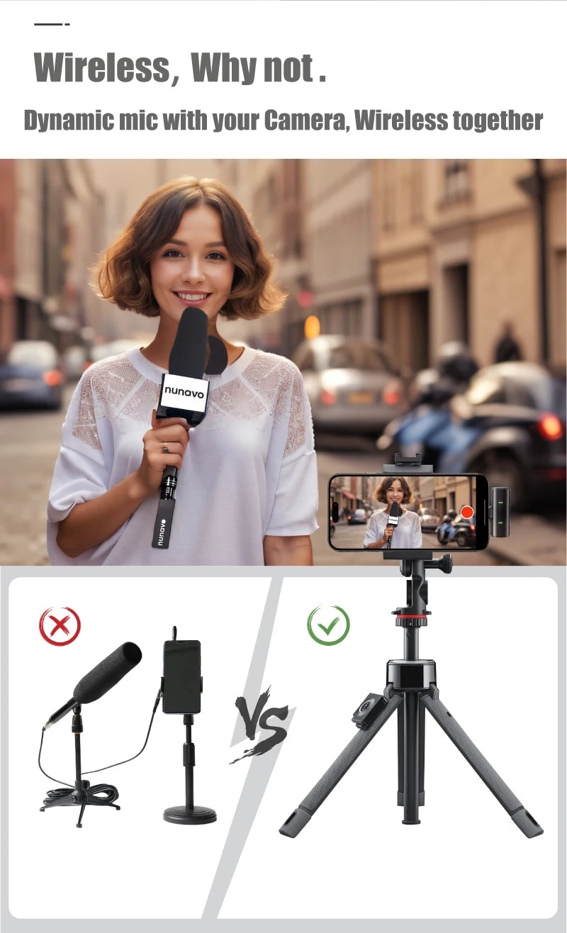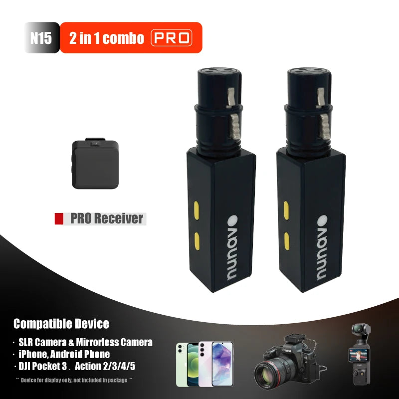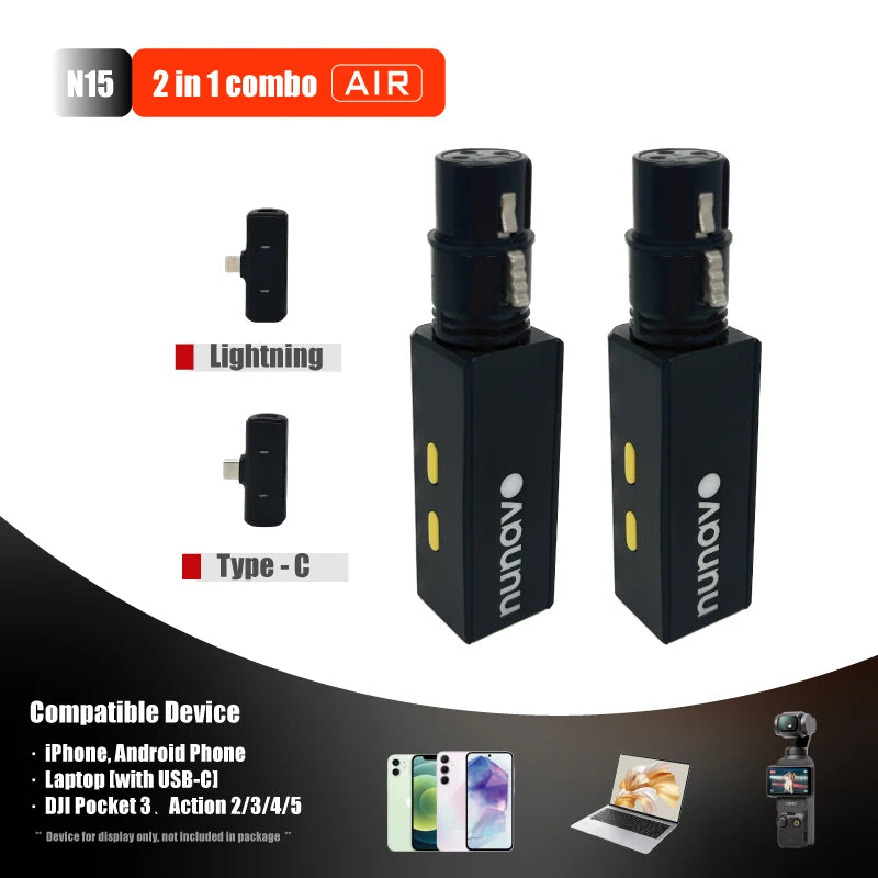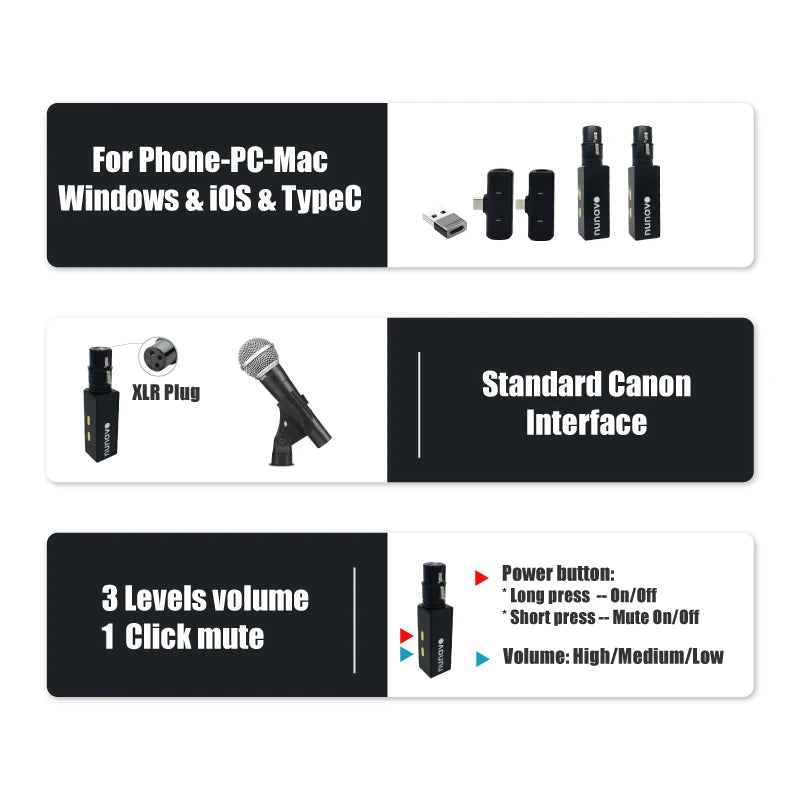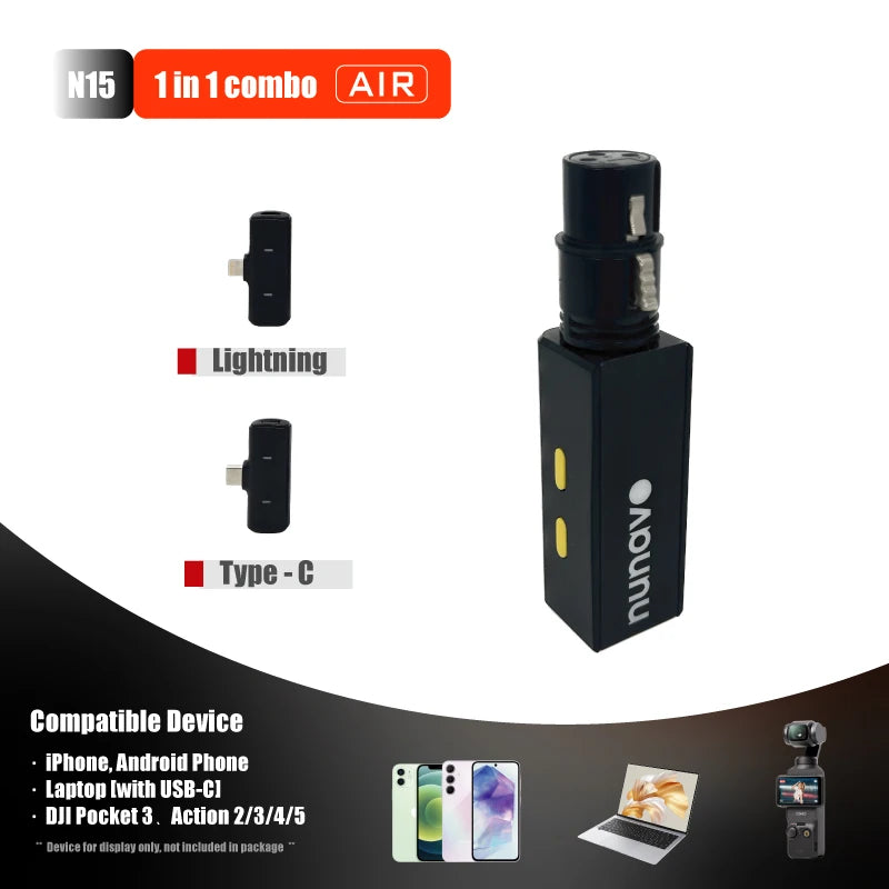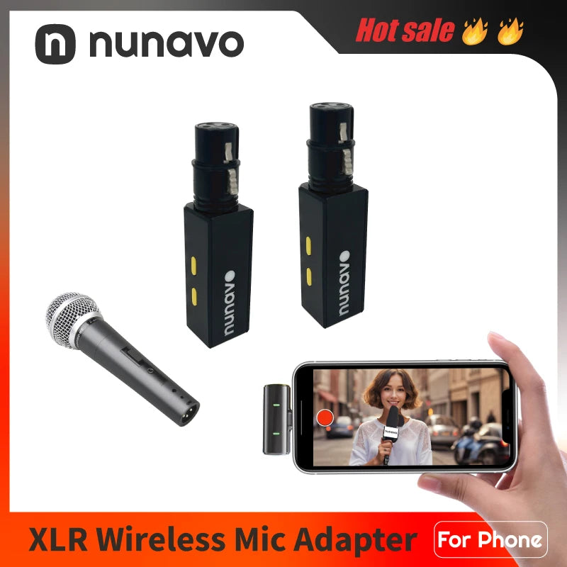 NUNAVO Wireless Microphone Converter XLR Transmitter Receiver Transmission Phone Android Smart telephone Interview live stream