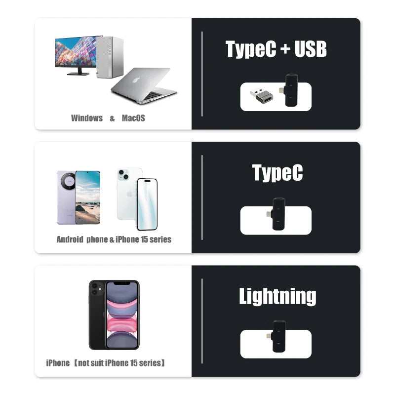 USB-C & Lighting dual receivers, plug and play, compatible with DJI Pocket 3, Android & Hongmeng OS & iOS devices