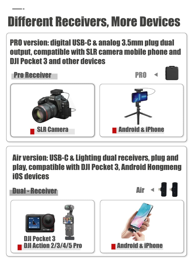It offers both Air and Pro versions of the receiver, available for iPhone and Android smartphone phones and SLR cameras.