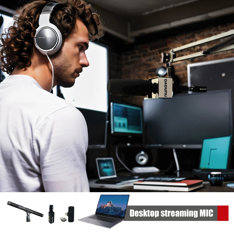 NUNAVO Wireless interview microphone Condenser Shotgun Mic XLR Microphone handheld for iphone android studio recording mic noise cancel