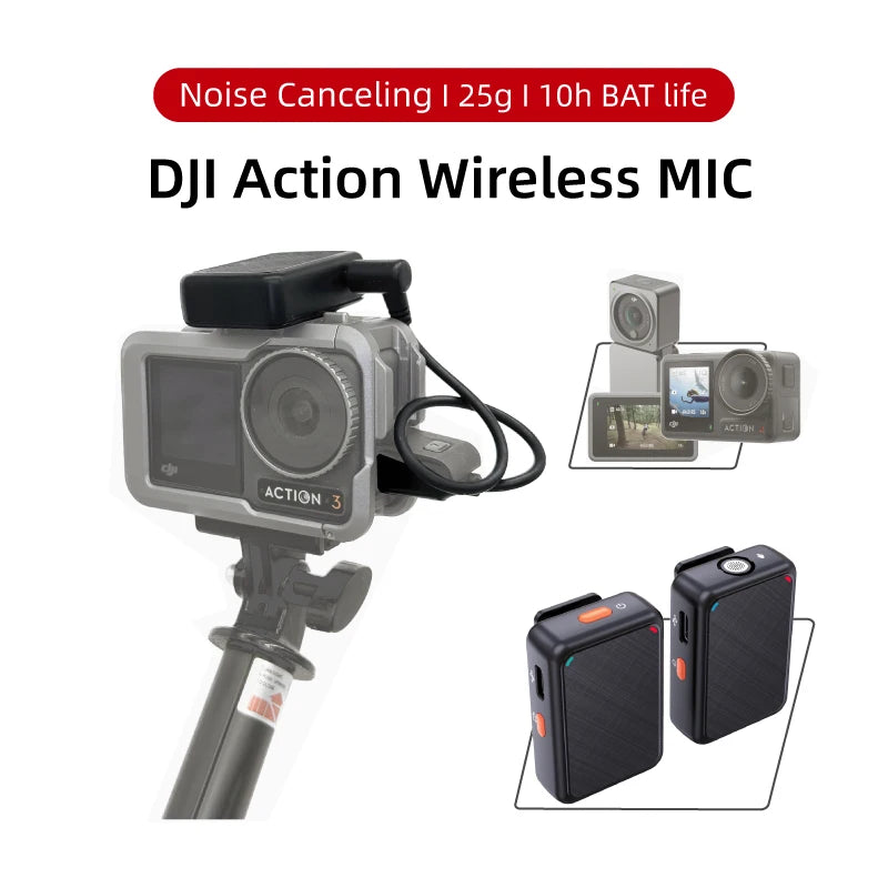 NUNAVO wireless microphone mic for DJI action 2/3/4 camera pocket3 oa4 mic audio no need mic adapter action camera Accessory hifi sound