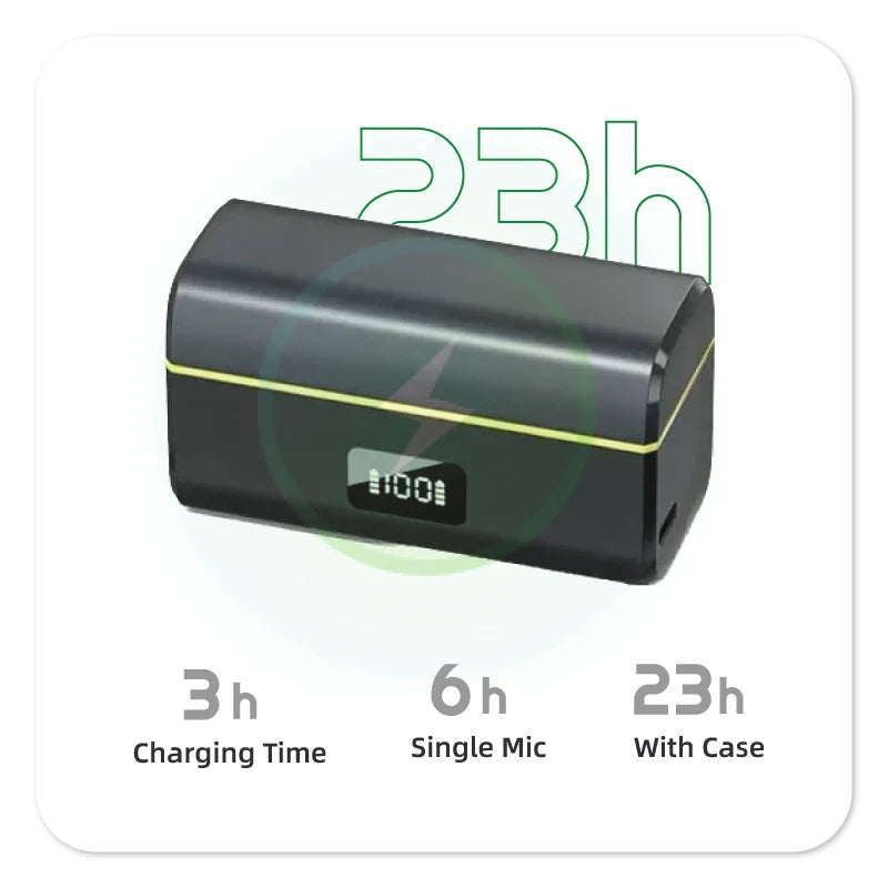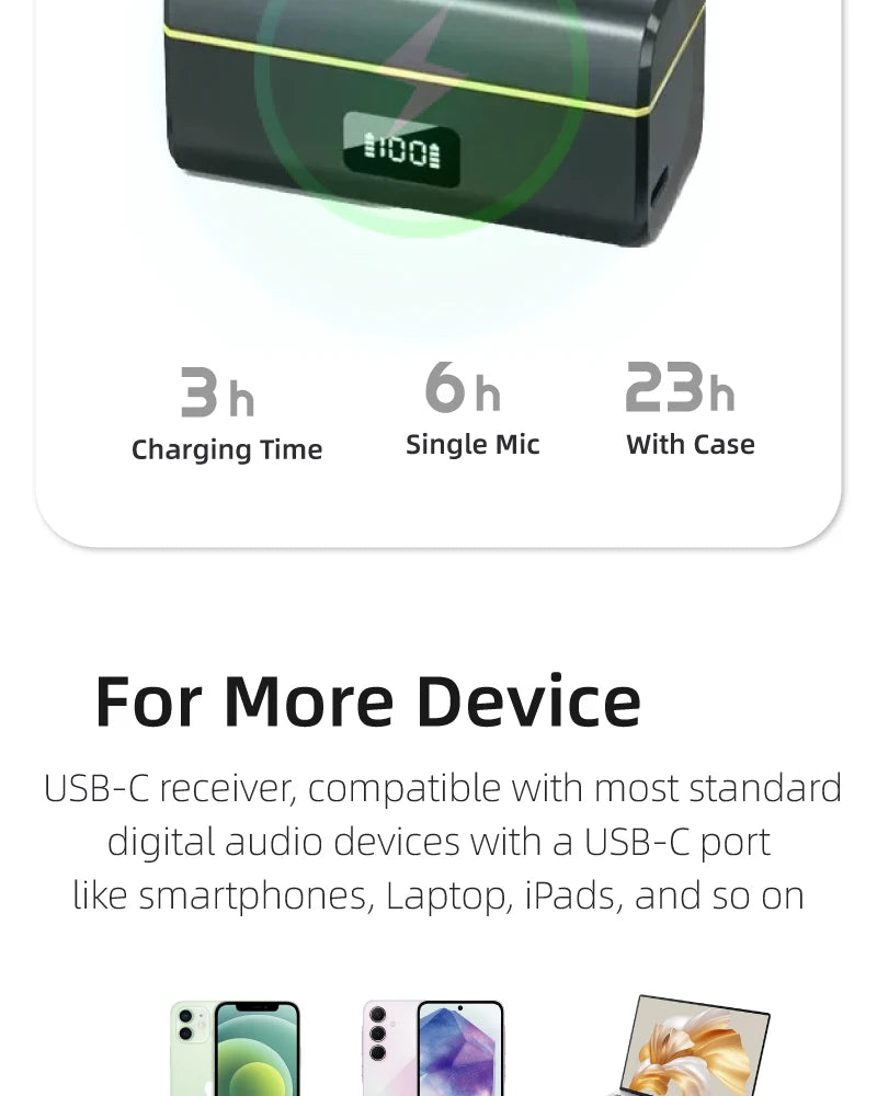 •Portable charging case for convenience and extended battery life : ensures that the microphone remains charged throughout the day, providing convenience and flexibility.